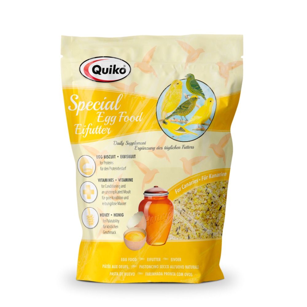 هو طعام بيض عالي الجودة تم تطويره خصيصًا لطيور الكناري وطيور الكناري. أنه يحتوي على العناصر الغذائية التي تحتاجها الطيور الصغيرة والبالغة أثناء التكاثر والانسلاخ. يمكن إطعام Quiko Special على مدار السنة كعلف مكيف.