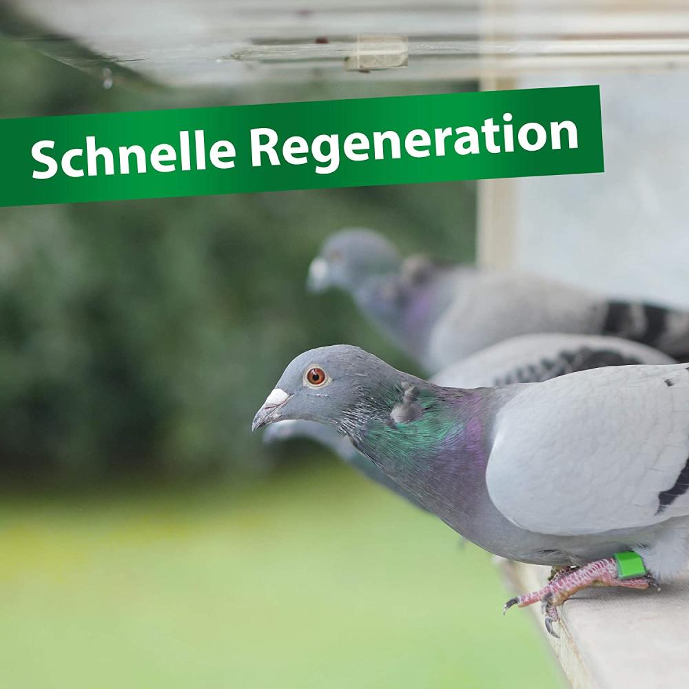 15 ميليتر في 1 لتر لكل 20 حمامة في اليوم.