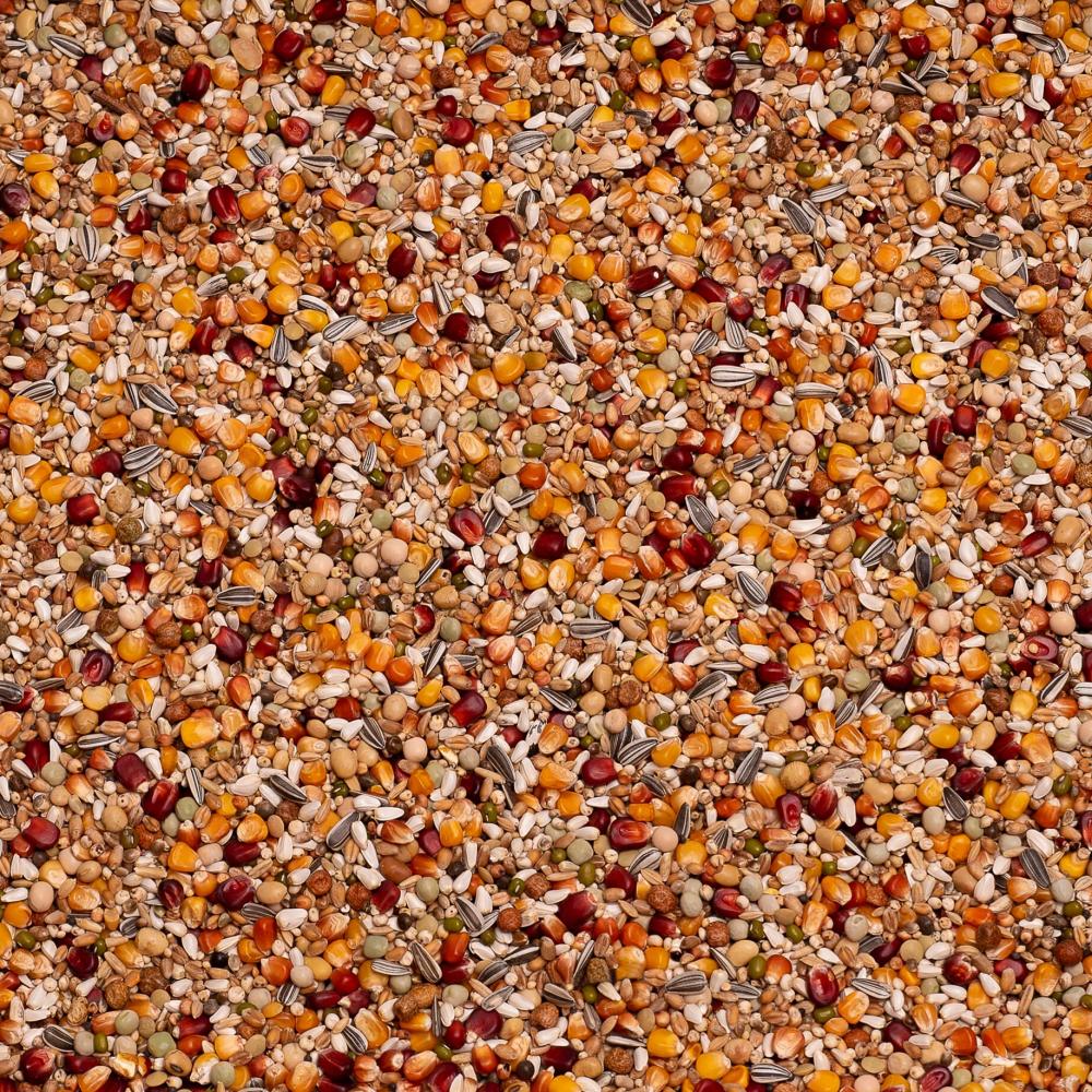 القمح – ذرة بوردو – ذرة كريبس – ذرة داري – ذرة ميرانو – ذرة بلاتا – القرطم – البازلاء الخضراء – بازلاء القيقب – فول الصويا المحمص – البازلاء الصفراء – الشوفان المقشر – بذور عباد الشمس المخططة – الفاصوليا الخضراء – بذور القنب – الأرز غير المقشور – الذرة الرفيعة الحمراء – البيقية – الدخن الأبيض – الدخن الأصفر – بذور اللفت السوداء – العدس