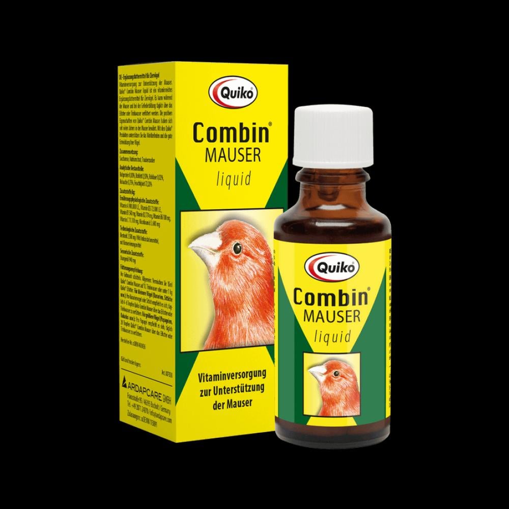 يعتبر سائل Quiko Combin Mauser بمثابة علف تكميلي غني بالفيتامينات لطيور الحيوانات الأليفة. يمكن إعطاؤه يوميًا أثناء عملية الانسلاخ وتكوين الريش عن طريق طعام البيض أو مياه الشرب.