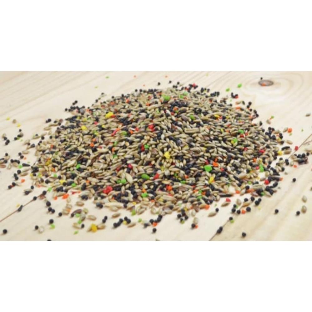 يتكون الخليط من: بذور عشبة الكناري (الألبيست)، بذور اللفت، بذور الكتان، الشوفان المقشر، بذور القنب، بذور النيجر، الفاكهة.