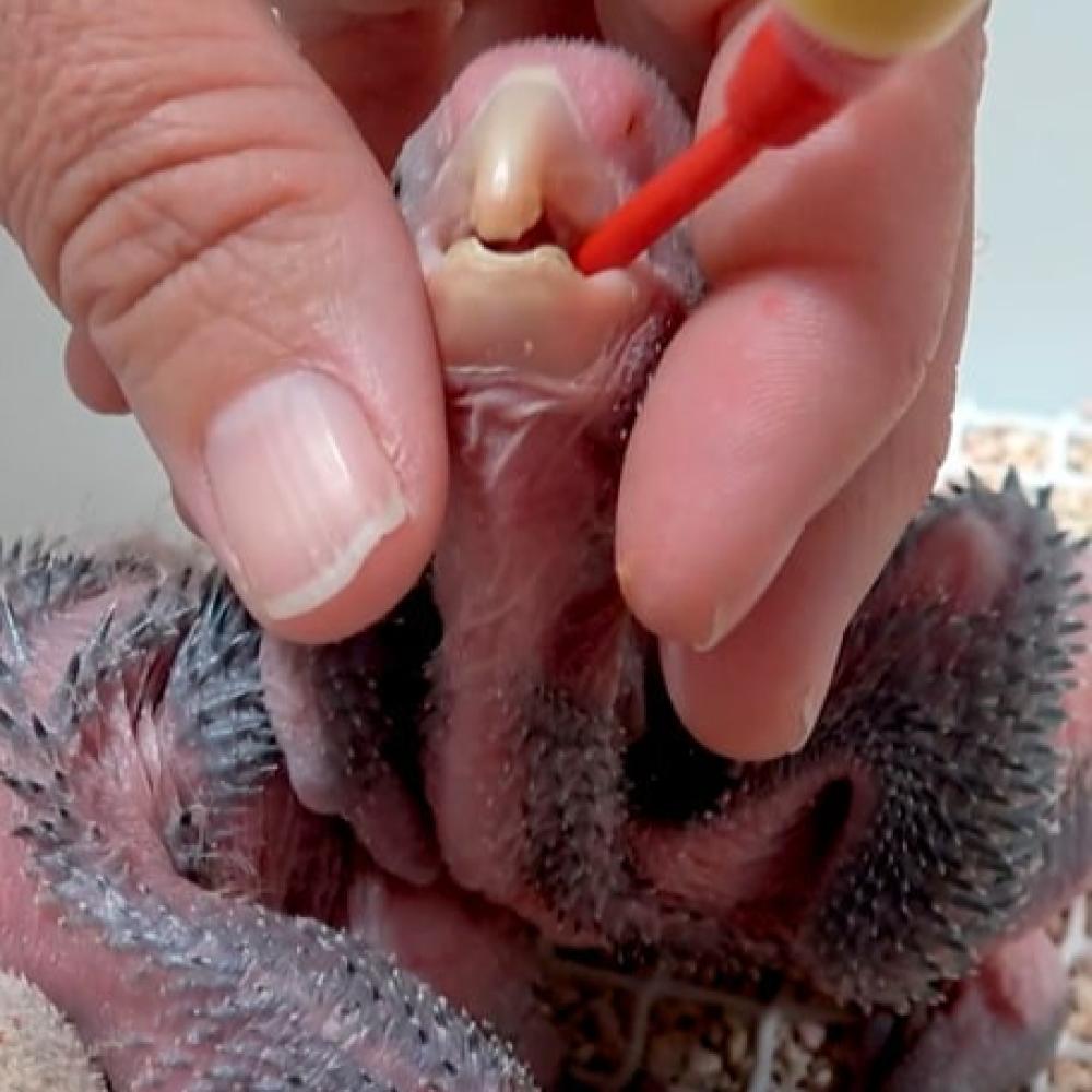 من لحظة ظهور الريش الدبوسية، من الضروري التبديل إلى تركيبة تغذية يدوية لاحقة مناسبة للأنواع التي سيتم تربيتها يدويًا.