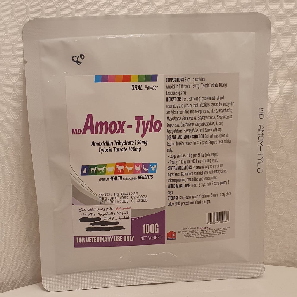 دواعي الإستعمال لعلاج أمراض الجهاز الهضمي والتهابات الجهاز التنفسي والمسالك البولية التي تسببها الكائنات الدقيقة الحساسة للأموكسيسيلين والتيلوزين ، مثل العطيفة ، والميكوبلازما ، والباستوريلا ، والمكورات العنقودية ، والمكورات العقدية ، واللولبية ، والمطثية ، والكورنية ، والإشريكية القولونية ، والحمراء ، والمستدمية