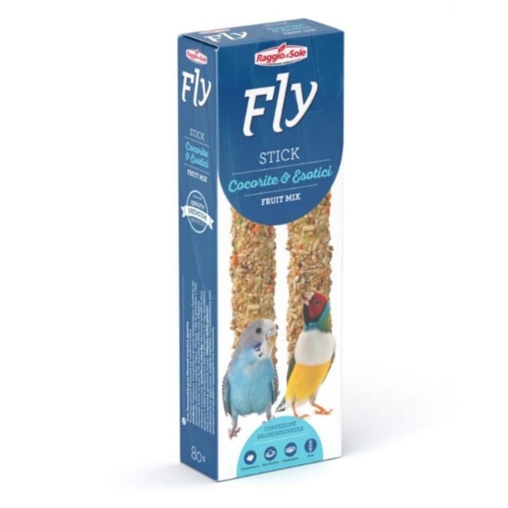 هو مكمل لذيذ للنظام الغذائي اليومي للببغاوات والطيور الغريبة، فهو يحتوي على الفاكهة - الموز والبرتقال والأناناس والكيوي - الغنية بشكل طبيعي بالسكريات والأملاح المعدنية والفيتامينات A و C. يعتبر Stick Fly غذاءً مكملاً مثاليًا لضمان الحيوية والرفاهية للببغاوات والطيور الغريبة، ويمثل ترفيهًا لذيذًا للاستمتاع به بطريقة طبيعية.