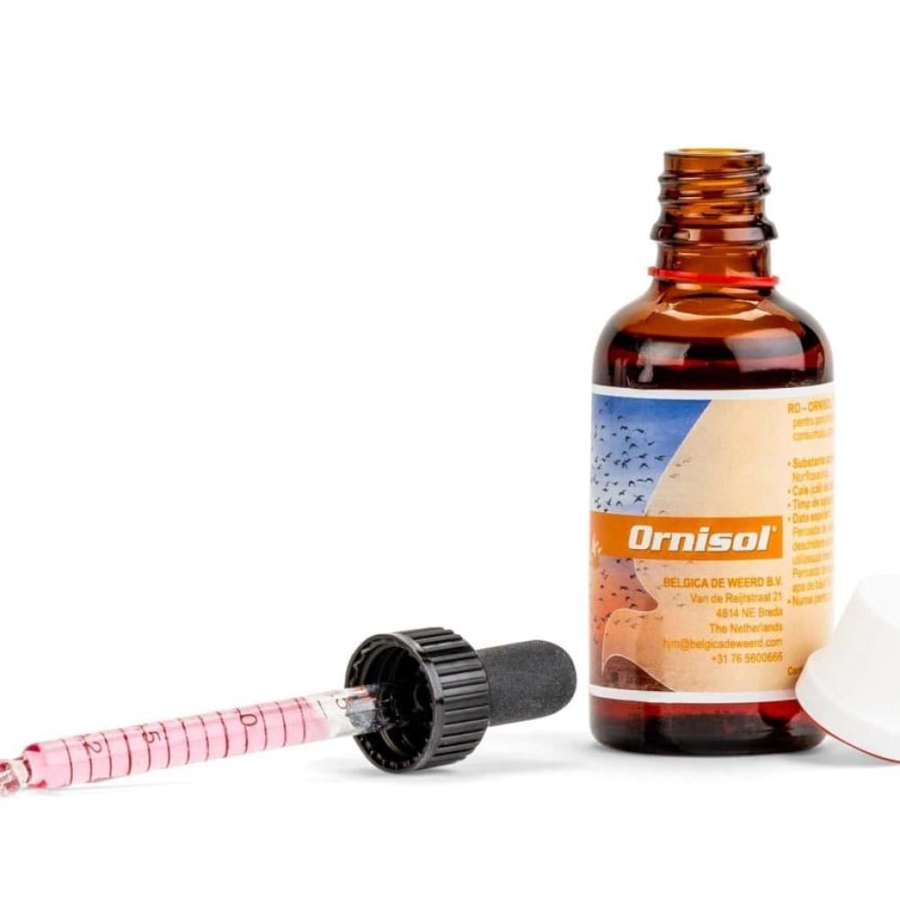 للإعطاء عن طريق الفم، قطرة واحدة لكل حمامة مباشرة في المنقار، مرتين يوميًا أو ٢.٥ مل من أورنيسول في لتر واحد من الماء، لعشرين حمامة، لمدة يوم إلى أربعة أيام. يُجدد ماء الشرب المُعالج كل صباح. في حالة الإصابة الشديدة بداء الطيور، يُخلط مع بلجاتاي.